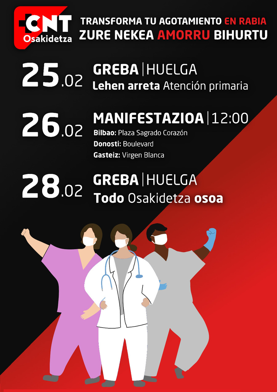 Urtarrilaren 23an egindako mobilizazioen ondoren, Mahai Sektoriala osatzen duten sindikatuek otsailaren 25ean eta 28an bi greba egun deitu dituzte, eta otsailaren 26an, larunbata, manifestazioak EAEko 3 hiriburuetan.